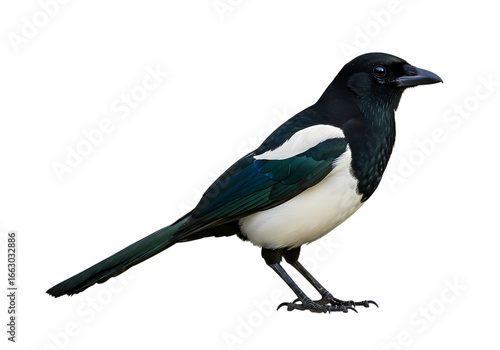 European Magpie: Detailed Profile on White Background isolated on transparent background