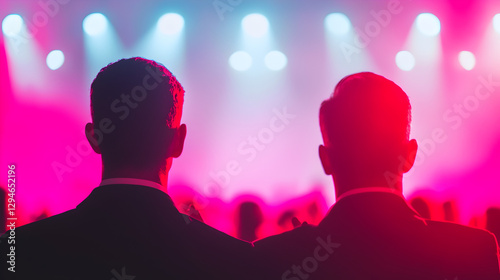 Evening event at a concert modern venue audience perspective vibrant atmosphere
