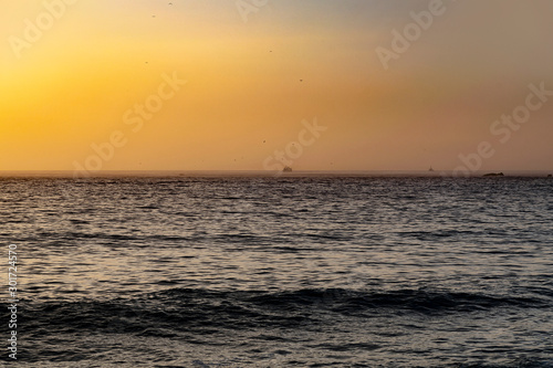 Evening time by Atlantic ocean in Nazare, Portugal.
