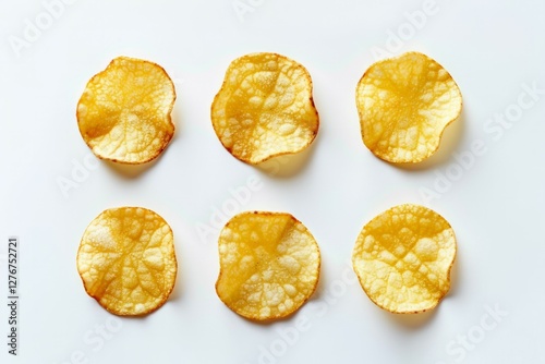arrangement, gold, crispy, snack, white background, simple, order, view, isolated, pattern, culinary, minimalist, food, grid, tasty, crunchy, design, snack food, neat, composition, detail, texture, savoury, organisation, layout, geometric, series, precision, isolated object, uniform, alignment, ai, artificial intelligence