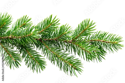 Evergreen branch with lush needles on transparent background