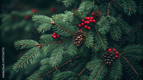 christmas, evergreen, pine, cone, berry, winter, holiday, dark, moody, nature, branch, decor, composition, festive, seasonal, wood, forest, needle, fir, spruce, cedar, red, green, brown, rustic, vintage, traditional, elegant, simple, cosy, warm, cold, snowy, frosty, icy, still, life, photo, image, photo, background, texture, design, element, illustration, graphic, template, card, chaplet