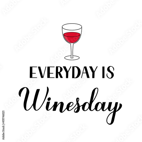 Everyday is Winesday calligraphy hand lettering with glass of wine. Funny drinking quote. Wine pun typography poster. Vector template for flyer, banner, sticker, label, t-shirt, etc