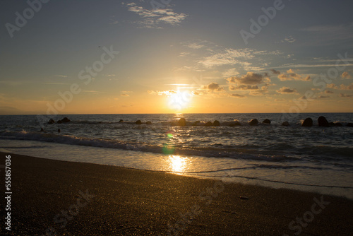evocative image of sunset over the calm sea on a beautiful day