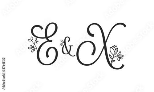 E&X floral ornate letters wedding alphabet characters