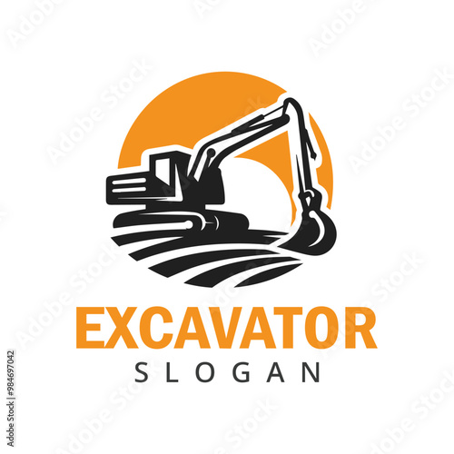 Excavator logo. Heavy equipment logo for construction company. Excavator illustration logo template.