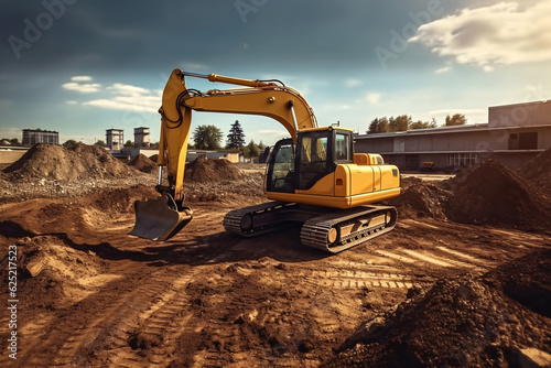 Excavator working on a construction site. Heavy duty construction equipment at work.Generative AI technology.