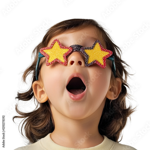 Exciting child's expression with star sunglasses indoor fun png image bright and cheerful vibes
