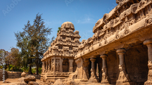 Exclusive Monolithic - Five Rathas are UNESCO's World Heritage Site located at Great South Indian architecture, Tamil Nadu, Mamallapuram, or Mahabalipuram