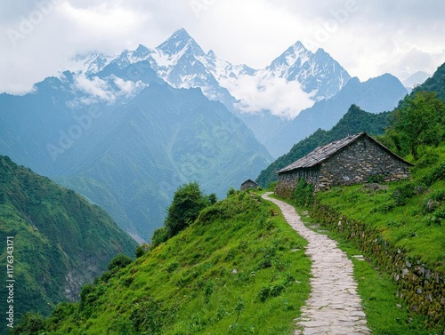 exotic destinations concept. Lost Villages of the Himalayas Trek to ancient, hidden villages with panoramic mountain vistas and rich cultural heritage