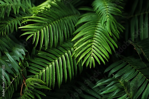 Exotic fern leaf pattern in lush green for vibrant jungle flora backdrop