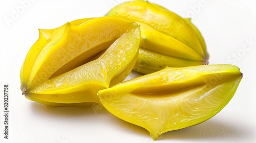 Exotic Yellow Starfruit, Sliced Open on a Stark White Background