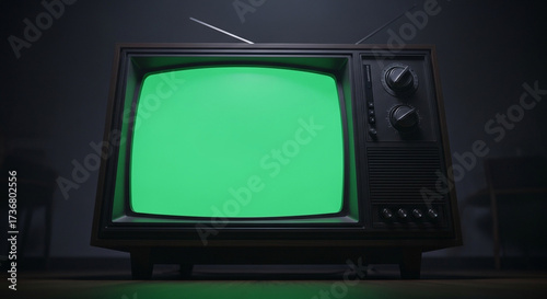 television, television, retro, vintage, classic, screen, green, chroma, key, display, media, entertainment, technology, old, antique, broadcast, grooved, show, program, content, video, film, motion picture, communication, nostalgia, past, memory, history, analog, signal, antennae, living, room, home, dark, moody, cinematic, studio, production, prop, object, electronic, device, appliance, style, design, aesthetic, culture, monitor