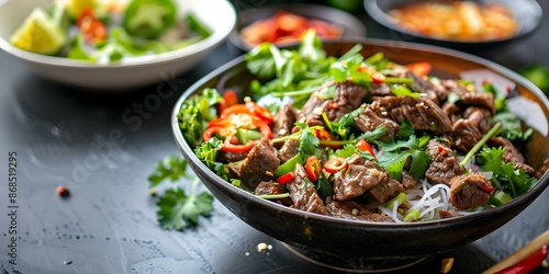 Experience Vietnamese cuisine with Bo Luc Lac a delicious shaking beef dish. Concept Vietnamese Cuisine, Bo Luc Lac, Shaking Beef, Asian Recipes, Culinary Experience