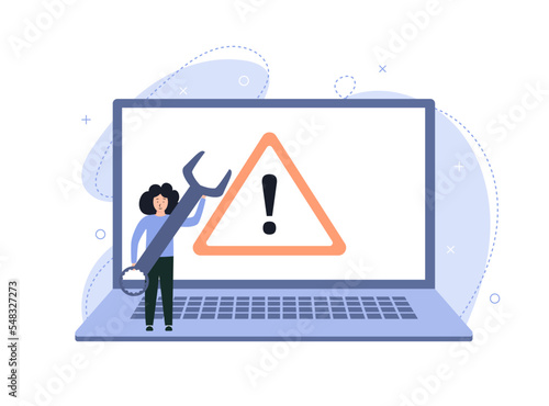 Expert diagnose computer, operating system problem. Big warning sign on screen