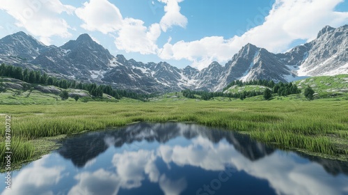 Exploring a Mirror Pool Reflected in Alpine Mountains Nature Scene Meadow Scenic View Tranquility
