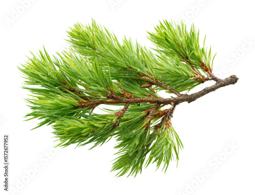 Exploring fresh green pine branches in nature. Isolated on transparent background, png.