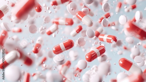 medication, capsule, pill, colourful, dynamic, floating, pharmacy, health care, pharmaceutical, vibrant, motion, red, white, soothing, abstract, modern, education, wellness, design, artistic, conceptual, gravity, science, nature, therapy, health, treatment, lifestyle, creativity, aesthetic, uplifting, emotional, engaging, pharmacology, supplement