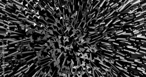 Explosion is divided into many elements in 3d. Background of an abstract blast into particles.