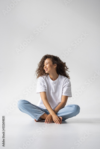 afro, apparel, appearance, attractive, background, blissful, bright, brunette, care, clean, clothing, concept, confidence, copy space, cute, face, female, fresh, freshness, gladness, glowing, happiness, health, ideal, joyful, looking, model, natural, pant, people, photo, portrait, posing, pretty, relax, relaxation, skin, skincare, smiling, spontaneous, standing, studio, studio shot, vitality, white, woman, young, youth