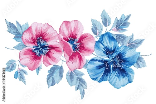 Exquisite Embroidered Floral Arrangement in Pink and Blue
