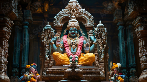 Exquisite Stone Sculpture of Hindu Deity in Ornate Temple Setting : Generative AI
