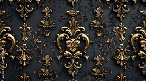 Exquisite Vintage Baroque Wallpaper in Gold and Black