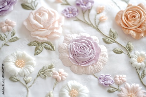 Exquisitely embroidered floral design on delicate white fabric
