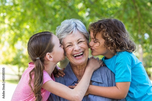 children, girl, female, caucasian, boy, male, senior, elderly, woman, happy, smiling, cheerful, joy, pleasure, enjoying, having fun, family, together, park, countryside, nature, parkland, green, tree, garden, summer, summer, daughter, two children, grandson, brother, sister, sibling, granddaughter, grandmother, outdoors
