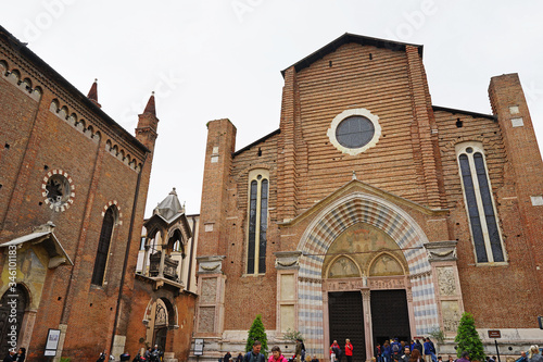 Exterior architecture and design of Chiesa di Santa Anastasia , a largest church of the Dominican Order In Gothic style, located near the Ponte Pietra- Verona, Italy