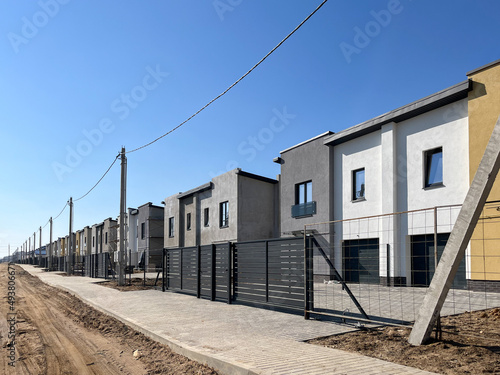 Exterior view of a modern townhouse. The concept of outdoor buildings of multi-apartment residential townhouses