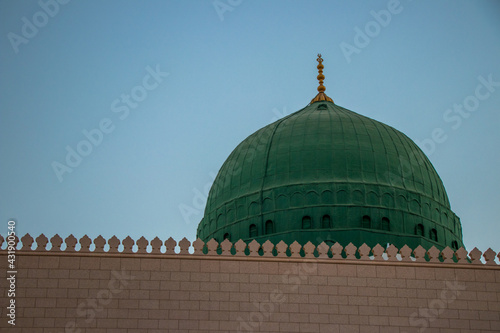 External image of the Prophet's Mosque in Medina in Saudi Arabia, The green dome of the mosque. Masjid Nabawi