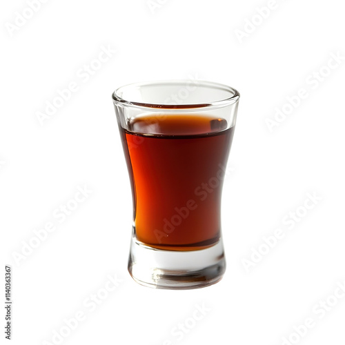 Extreme front view of a perfect looking Rum Shot isolated on a white transparent background