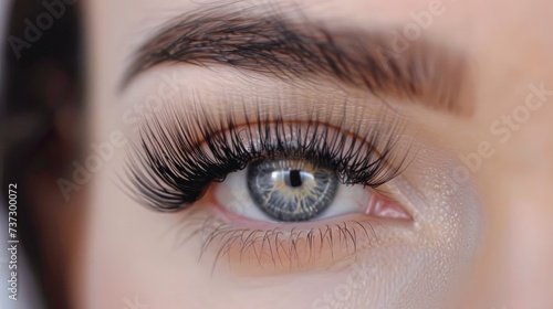 Extreme Long False Eyelashes Transforming a Female Eye. Close-up Macro Shot of Eyelash Extensions, Representing Makeup, Cosmetics, and Beauty