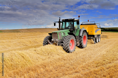 harvest, bundle, man, daytime, field, nature, straw, wheat, landscape, baler, newspaper, crop, gathering, transport, working, harvest, summer, farming, agricultural