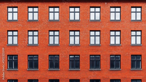 Facade of a red brick building with windows. Architecture concept.