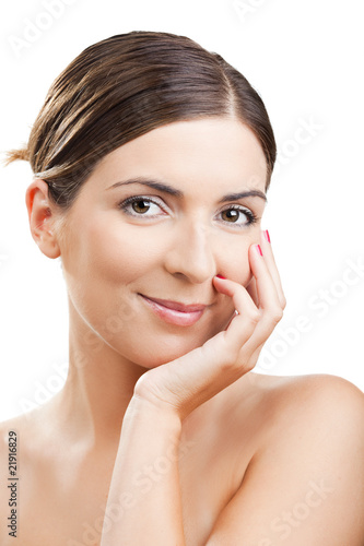 woman, beautiful, female, young, face, health, girl, portrait, beauty, fresh, attractive, skin, youth, cheerful, clean, closeup, cosmetic, cute, facial, fashion, model, freshness, gorgeous, pretty, smile, healthy, lovely, make-up, sensual, treatment, well-being, wellness, people, person, caucasian, background, brunette, colours, skincare, close, up, closeup, 20s, isolated, white, look, hand, happy, wrinkle