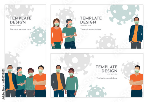 Face medical mask for safety COVID-19 (Coronavirus, pm 2.5 , Group of people wearing medical mask for coronavirus protection and healthcare. template vector illustration design