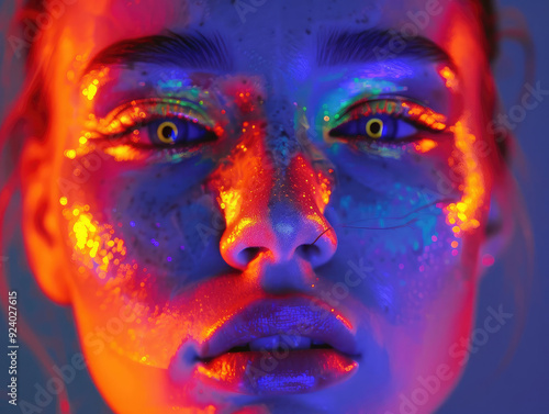 face, beauty, woman, fashion, make-up, model, eye, make-up, eye, art, closeup, lip, cosmetic, glamour, skin, people, sensuality, hair, paint, colours, person, studio, mask, closeup, elegance