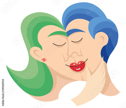 face, couple, love, kiss, draw, colourful, colours, man, woman, person, beauty