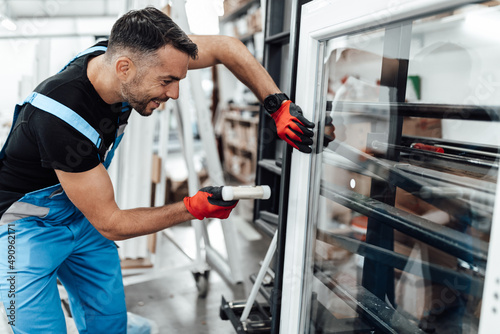 industry, window, industrial, factory, plant, aluminium, work, men at work, screw, gun, production, assembly, workshop, craftsman, woodwork, professional, hand-made, manufacturing, man, closeup, door, tool, equipment, hand, pvc, skill, job, line, machinery, handcraft, cutting, male, manual, metal, steel, occupation, indoor, 1, only, people, human, person, pipe, process, protective, toughness, adult