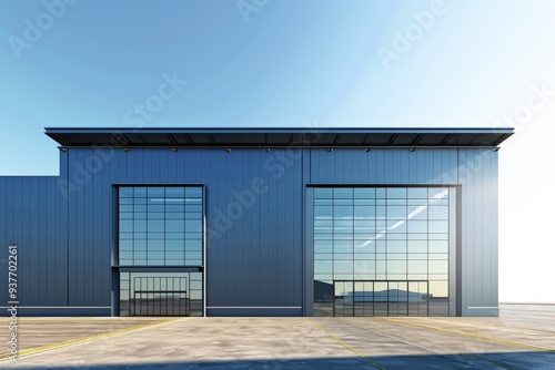 Factory's exterior, featuring clean lines, innovative architecture, and eco-friendly features. Beautiful simple AI generated image
