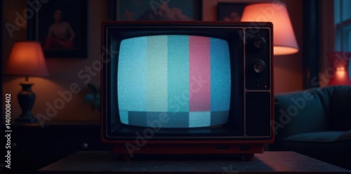 Faded vintage TV screen with static noise and CRT glow, old technology, nostalgic glow