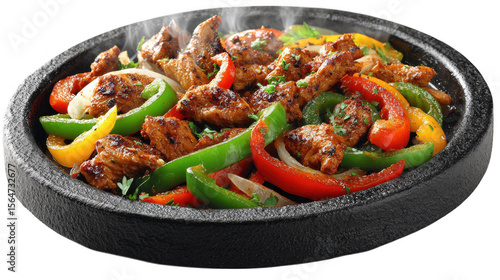 background, transparent, pepper, frying pan, sizzling, food, dish, meal, cookery, cooking, plate, vegetable, onion, red, green, yellow, meat, chicken, beef, pork meat, spice, herb, parsley, cilantro, seasoning, delicious, tasty, fresh, grilled, hot, steam, smoke, mexican, latin, american, eatery, dinner, lunch, closeup, pan, stone, plaster bandage, iron, serving