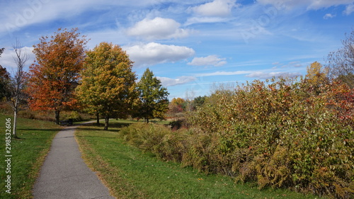 autumn, landscape, tree, road, nature, fall, sky, forest, tree, season, field, grass, park, green, blue, yellow, rural, path, meadow, colourful, leaf, leaf, wood, country, cloud