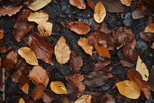 leaf, fallen, ground, dark, brown, autumn, nature, fall, texture, organic, decay, season, wood, forest, floor, dry, dead, foliage, pattern, earth, natural, surface, background, gold, yellow, wet, damp, colours, light, shadow, shape, vein, detail, macro, abstract, landscape, environment, beauty