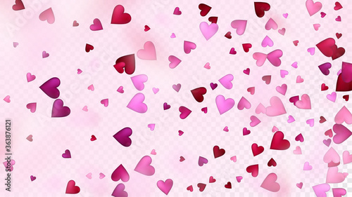 Falling Hearts Vector Confetti. Valentines Day Wedding Pattern. Beautiful Pink Glitter Valentines Day Decoration with Falling Down Hearts Confetti. Modern Gift, Birthday Card, Poster Background