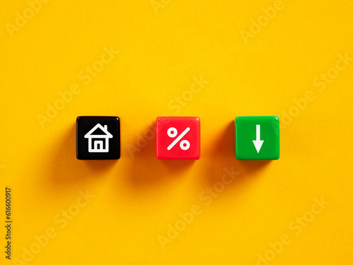 house, price, mortgage, loan, rate, decrease, fall, low, business, percent, money, sale, finance, property, home, cost, reduction, interest, falling, investment, estate, market, percentage, buy, economy, rent, rental, financial, real, profit, housing, up, inflation, tax, arrow, decreasing, economic, nobody, no people, topview, yellow, background, concept, copy space, cube, block, icon, symbol