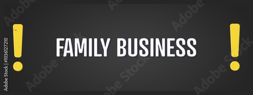 Family Business. A blackboard with white text. Illustration with grunge text style.