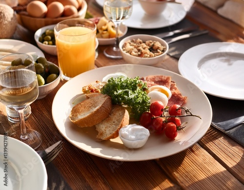 food, meal, plate, dinner, meat, salad, dish, delicious, tomatoes, cookery, epicure, bread, grilled, vegetable, eatery, healthy, egg, breakfast, fish, lunch, sauce, cheese, fresh, roasted